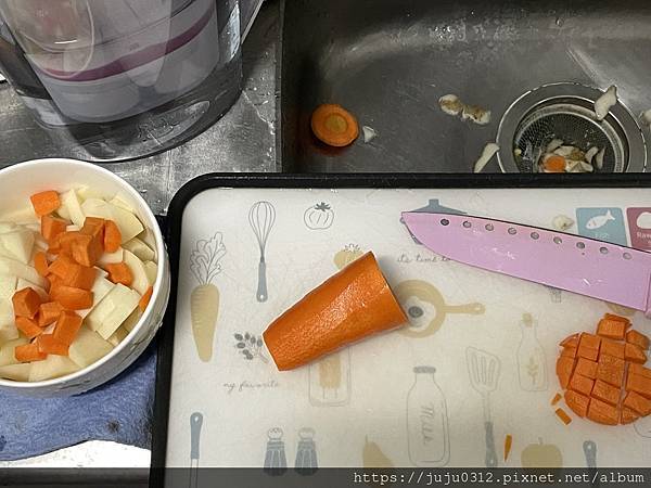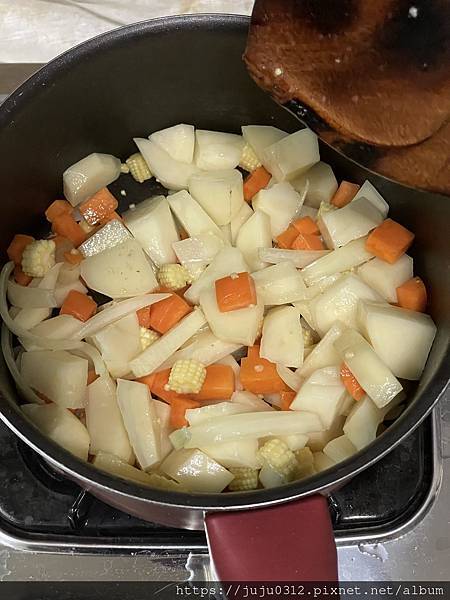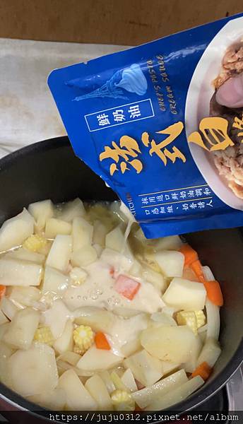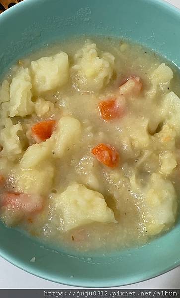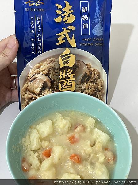 我個人是將品高 EZ KITCHEN 法式白醬,搭配一些馬鈴薯、洋蔥和胡蘿蔔,做成好喝的奶油濃湯。